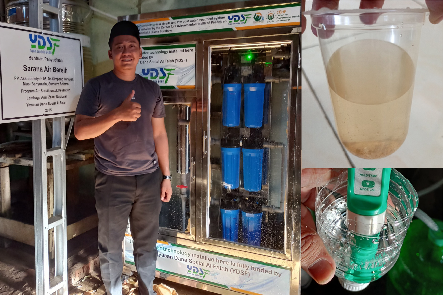 Pesantren Al-Khoziny receives clean water filtration system from Center for Environmental Health of Pesantren UNUSA and Yayasan Dana Sosial Al Falah